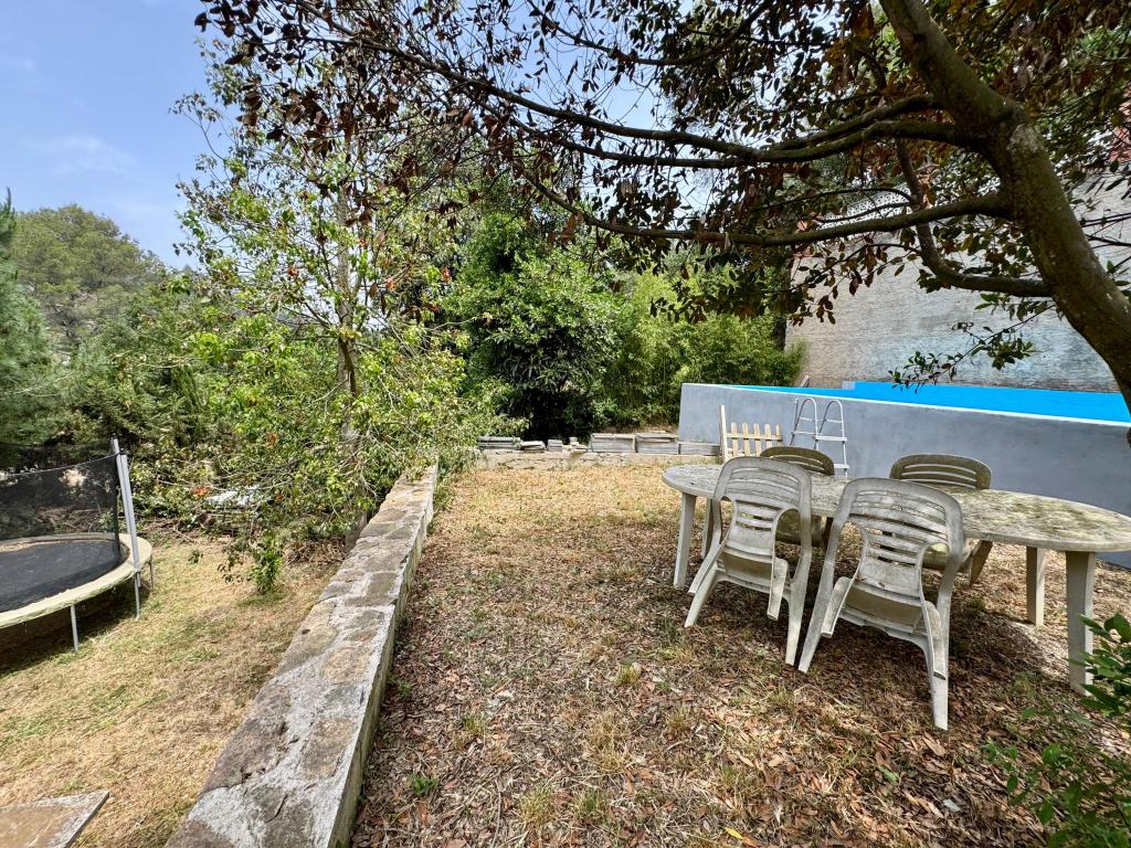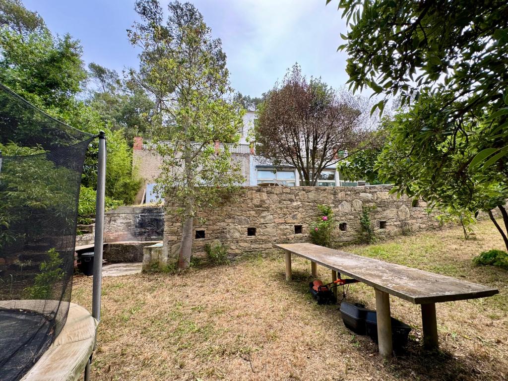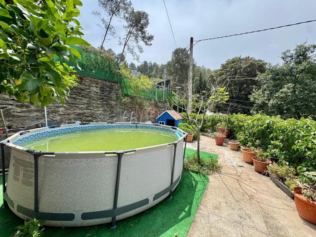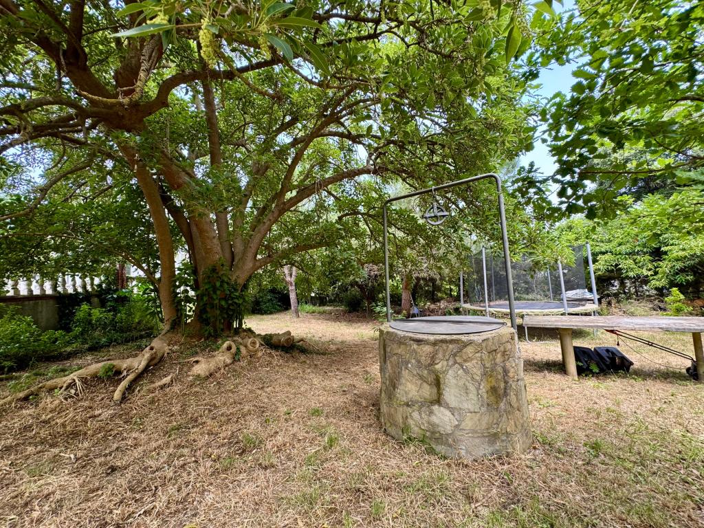 La casa tiene una gran parcela de 1.095mt, con zonas ajardinadas, estanque para peces, pozo de agua, acceso para vehículos, amplia zona de barbacoa y piscina de 8x4mt.