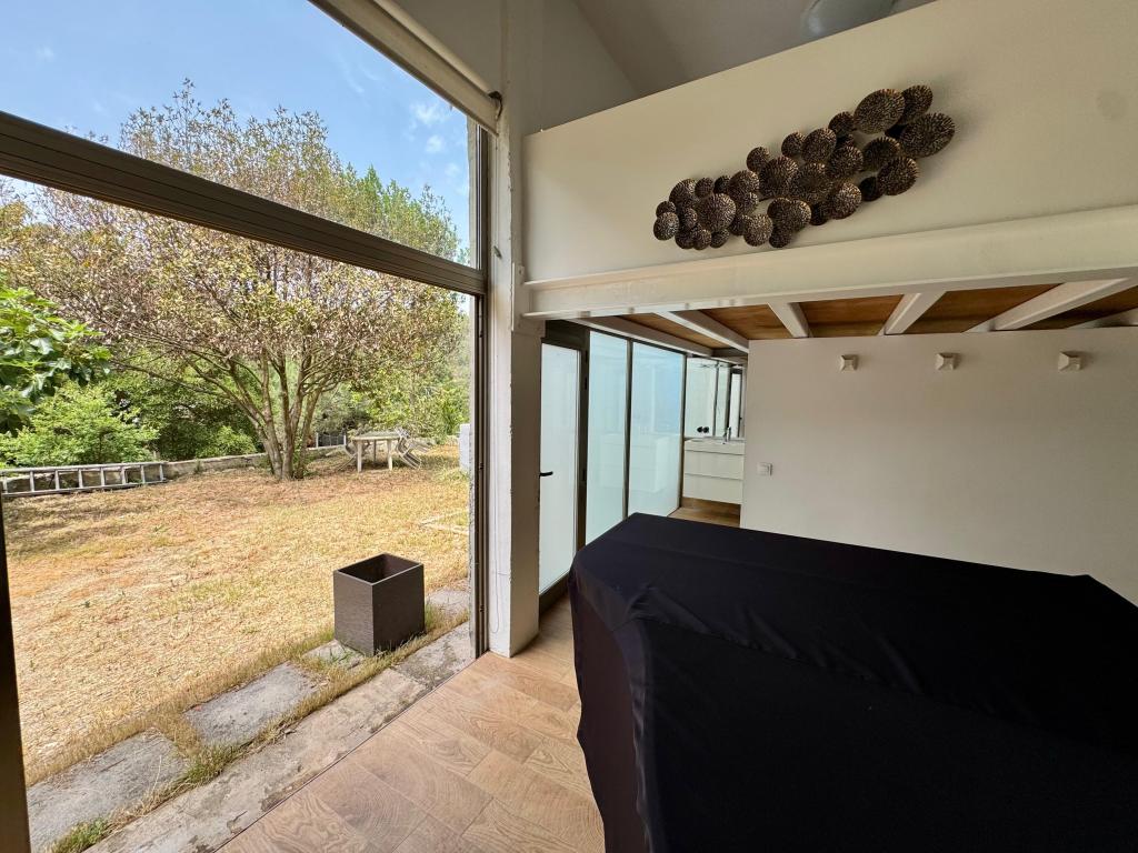 - La primera planta se compone de vivienda de 60mt, distribuida en 2 habitaciones dobles de 10mt, baño de 5mt con ducha, cocina americana de 15mt abierta a salón comedor de 23mt con grandes ventanales y salida a terraza de 60mt. En esta primera planta tenemos otra terraza de 84mt con zona de pérgola y un patio de 30mt con aseo/lavadero de 6mt. Dispone también de suelo radiante porcelánico imitación parquet, ventanas de aluminio climalit y puertas interiores lacadas blancas.