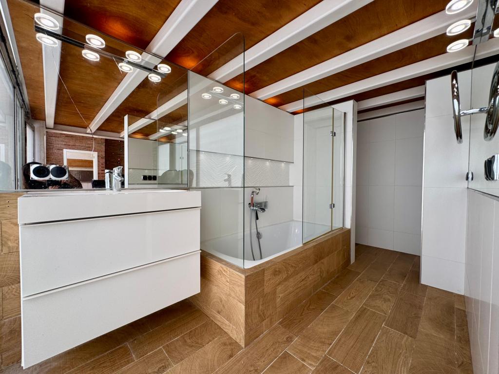 - La planta baja es una vivienda de 67mt, distribuida en salón comedor de 26mt, cocina de 16mt, baño de 7mt con bañera y habitación de 15mt. Dispone de suelo radiante porcelánico imitación parquet, 2 splits de aire acondicionado con bomba de calor , ventanas de aluminio climalit y todos exteriores.